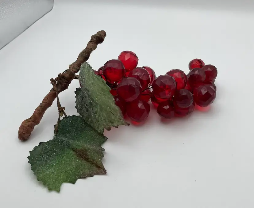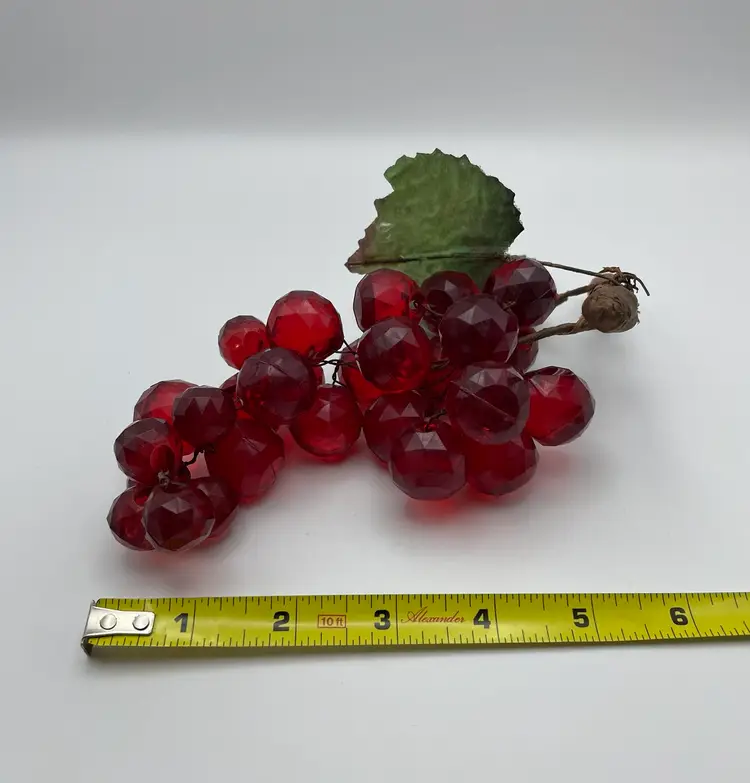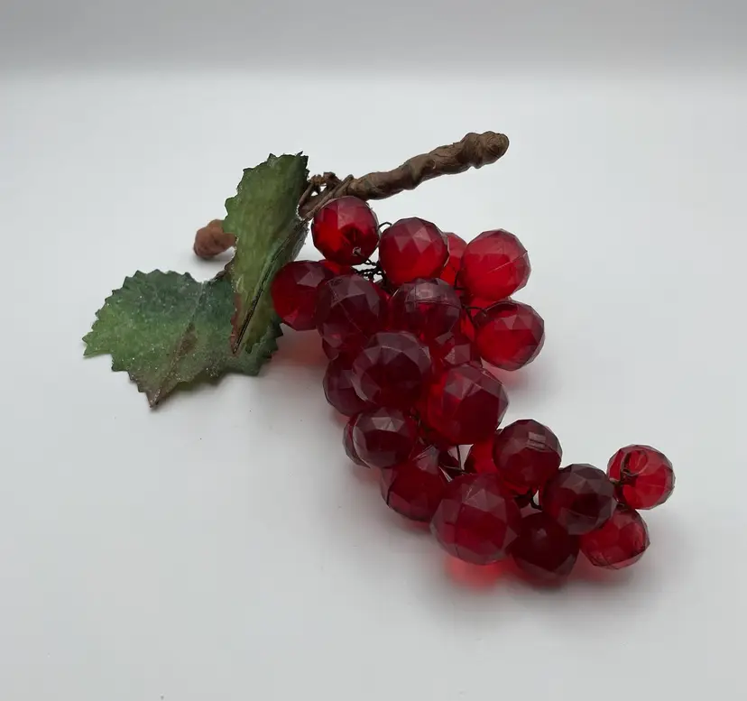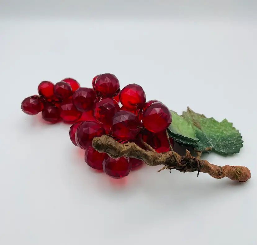 MidCentury RED FACETED GRAPES Lucite Acrylic Small 6" Cluster Bunch Retro Fruit