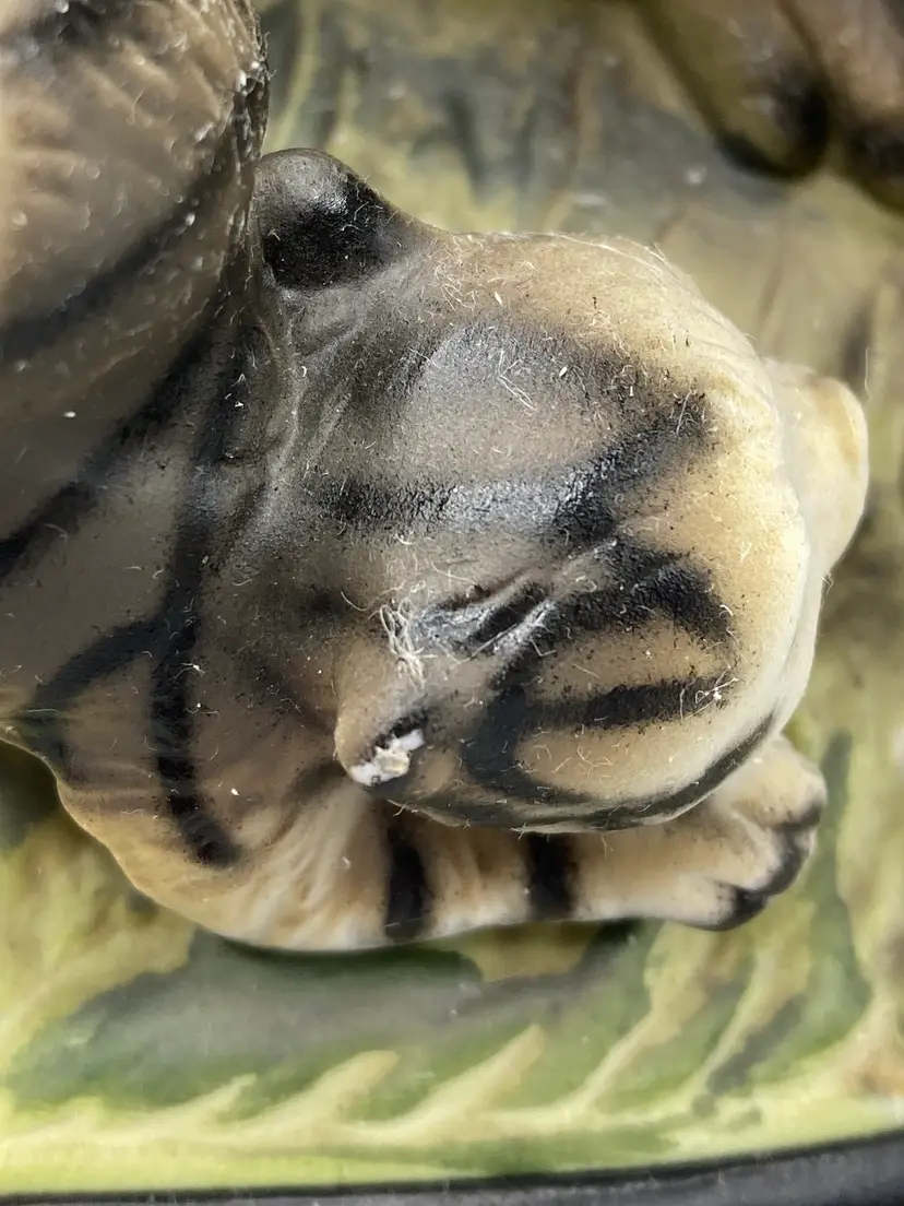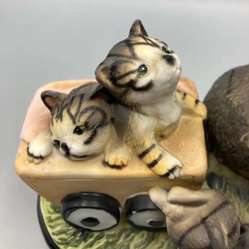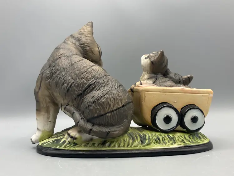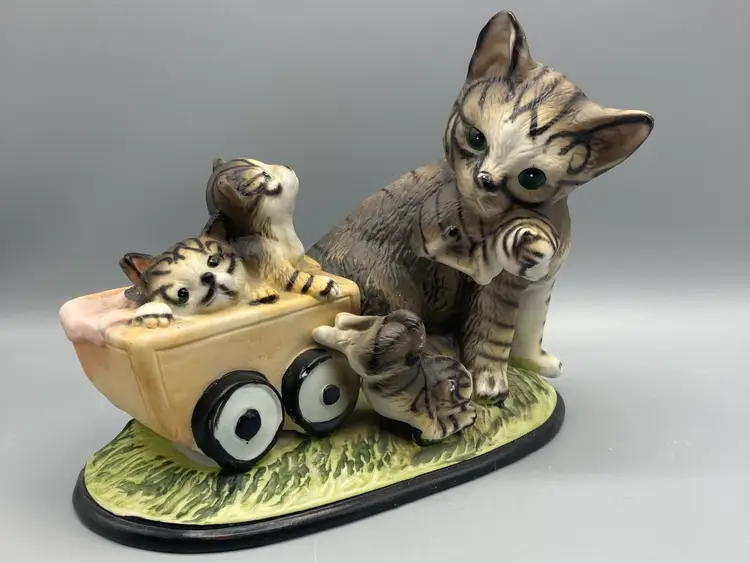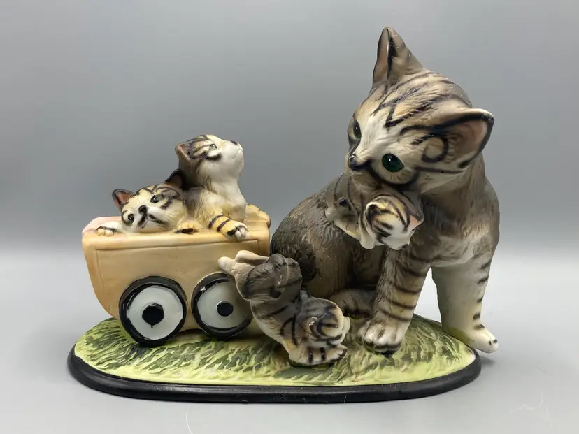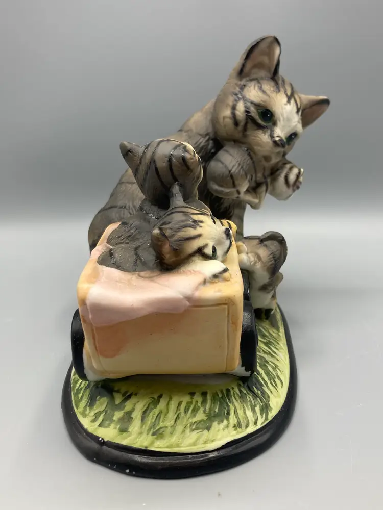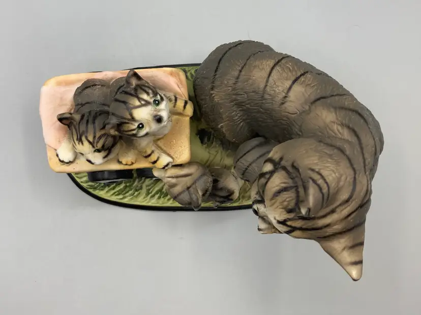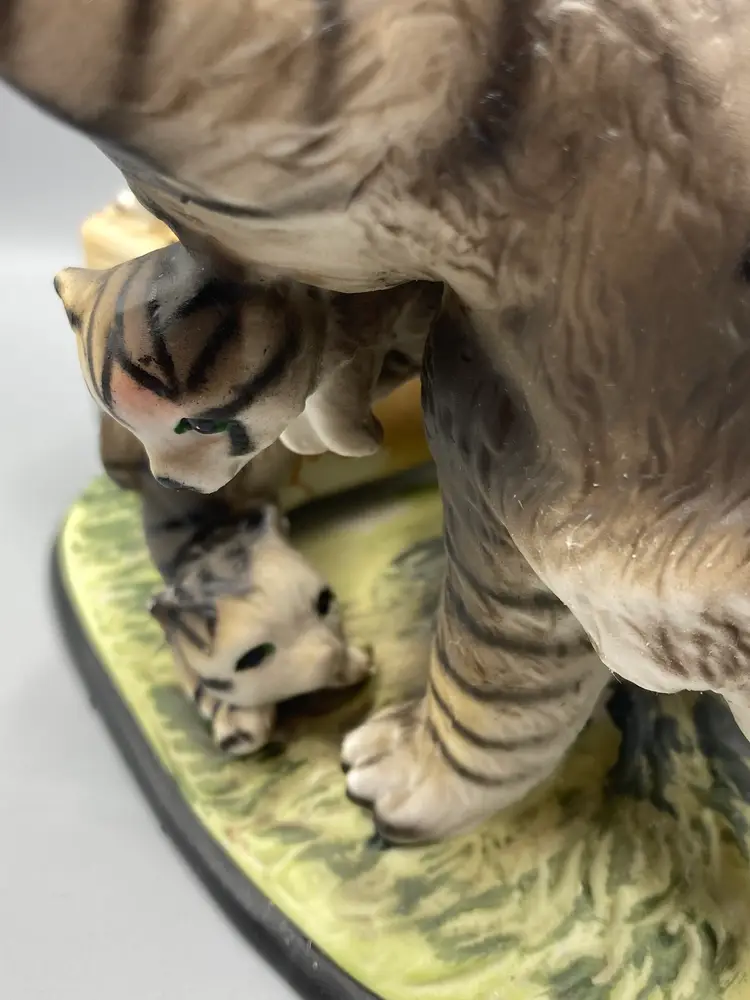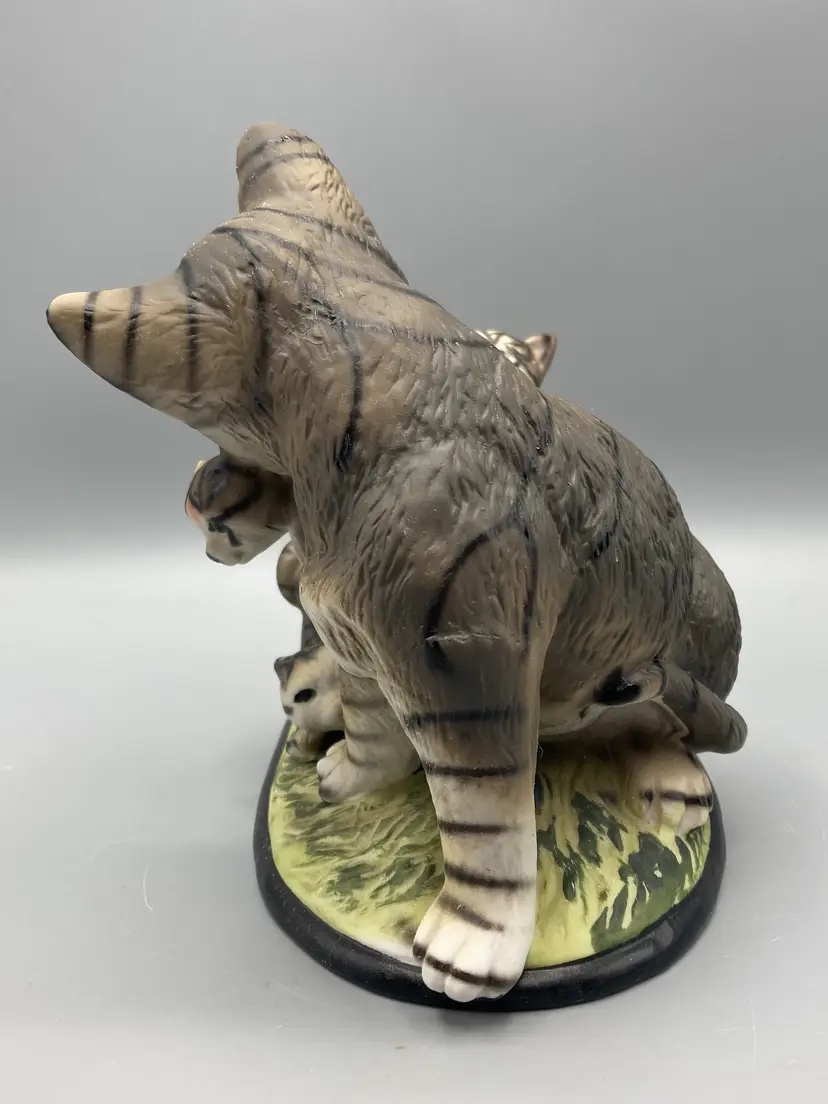 This cat figurine is in good overall condition. It does have a small chip on the tip of one of the kittens ears, clearly visible in the pictures. It measures approximately 6 1/4" tall x 8 1/2" x 5".